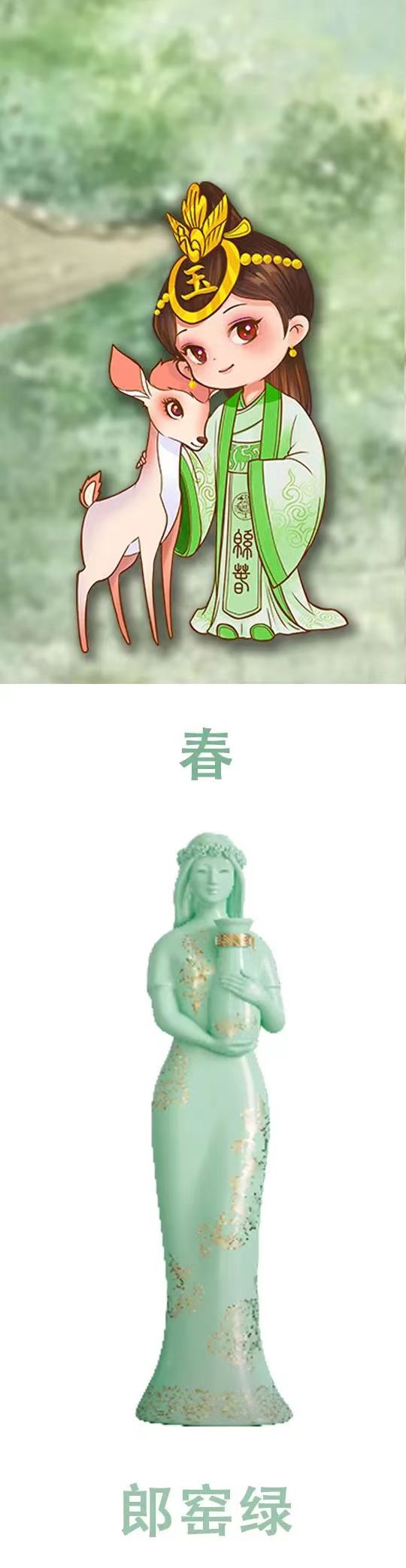 為了加深顧客對綿春酒業(yè)的認知,綿春酒業(yè)特在三八婦女節(jié)正式推出品牌吉祥物“玉妃”?!坝皴槲铩钡脑O計靈感是以古蜀國十二世開明王和玉妃的歷史傳說作為IP原型,結(jié)婚“玉妃”的時代背景,融入傳統(tǒng)元素,是具代表性的國漫風吉祥物,萌趣十足又不缺俏皮可愛;同時也祝愿天下的婦女像玉妃一樣美麗且擁有無限可能。