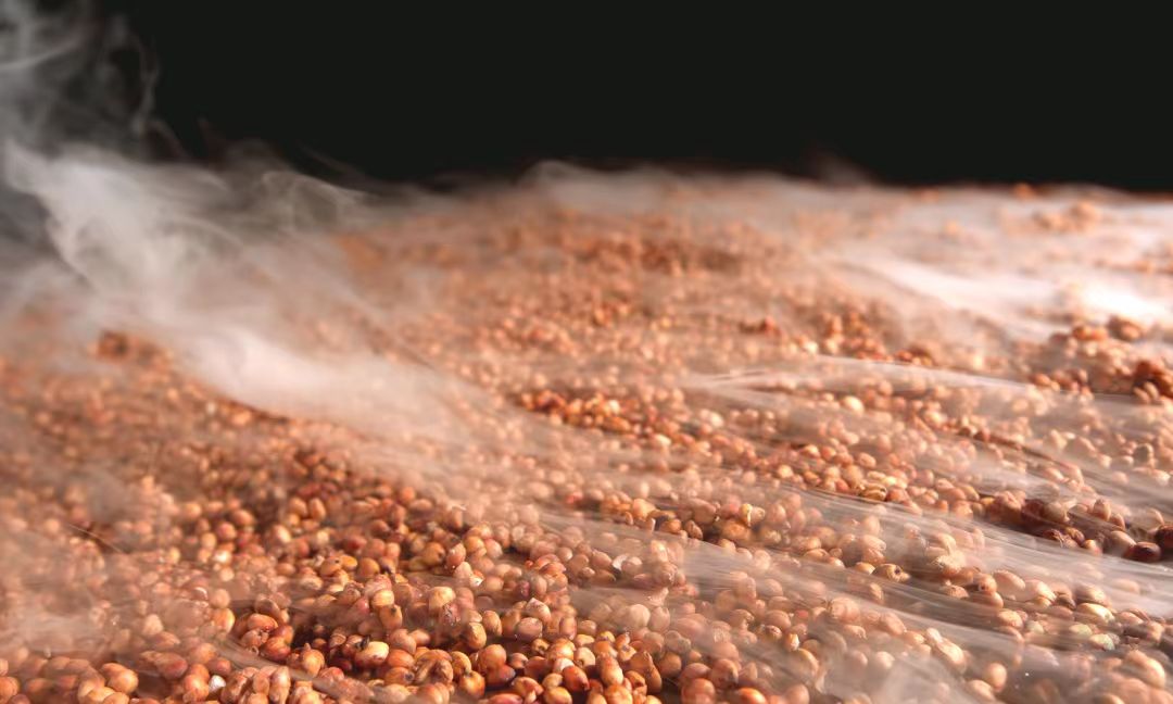 小麥、玉米、大米、糯米,同樣選擇淀粉含量均在60%以上的地道川糧。小麥蛋白質(zhì)含量高,黏著力強(qiáng),營(yíng)養(yǎng)豐富,易糊化且出酒率高,在發(fā)酵中所產(chǎn)的熱量大;玉米富含脂酸,在發(fā)酵中可水解成環(huán)已六醇及磷酸,磷酸也能促成甘油(醇類)的生成能讓白酒變得更甜;大米米質(zhì)純凈,結(jié)構(gòu)疏松,糖分高,最適合用來(lái)補(bǔ)充白酒中的淀粉量;糯米則幾乎全是支鏈淀粉,能產(chǎn)生大量低聚果糖,使得釀出來(lái)的白酒更加細(xì)膩醇厚。