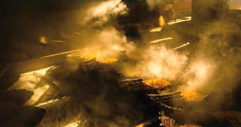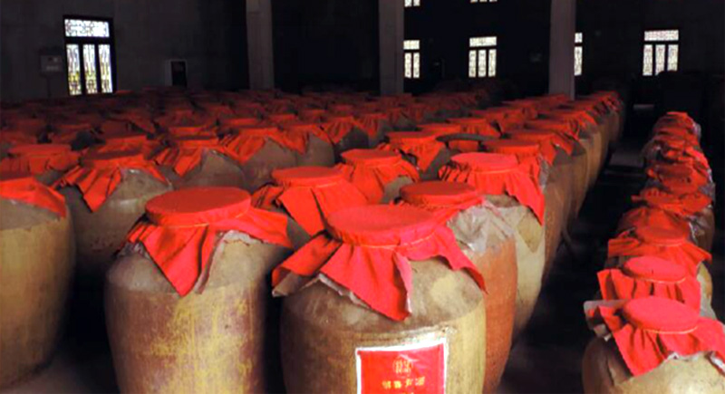 綿春貢酒采用固態(tài)發(fā)酵蒸餾法,把發(fā)酵酒醅加熱生成蒸汽,將易揮發(fā)的酒精、水、雜酯油及酯類物質蒸發(fā)為氣體后再冷卻為液體,將酒醅中4—6%的酒精濃縮到50一70%,由此產(chǎn)生原酒。掐頭去尾裝入酒海,進行脂化老熟。